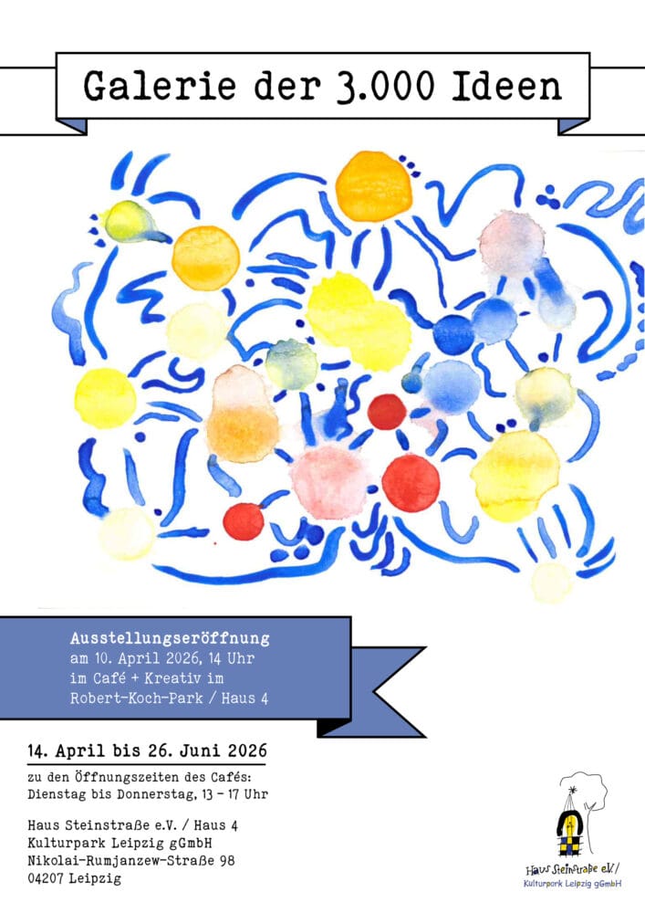 Am 10. April 2026 findet 14.00 Uhr die Ausstellungseröffnung der „Galerie der 3000 Ideen“ statt. Die Kinder und Jugendlichen aus den GTA-Kursen und den Jugendkunstschulkursen der Friedrich-Fröbel-Schule und dem Georg-Christoph-Lichtenberg-Gymnasium präsentieren Kunstwerke, die im Laufe des letzten Jahres entstanden sind. Das „Cafe + Kreativ“ ist am 10. April von 13.00 – 17.00 Uhr geöffnet.